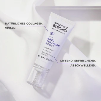 Die reichhaltige Pflege mit natürlich gewonnenem, veganem Kollagen spendet und speichert Feuchtigkeit. Ein Booster aus weißer Lupine regt die hauteigene Kollagenproduktion an und glättet feine Linien. Für einen jugendlich, strahlenden und wacheren Blick.