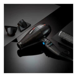Bei dem professionellen Haartrockner EXCESS-HQ aus der neuen Haartrockner-Serie HQ (High-Quality) trifft ultimative Power auf raffiniertes Design mit Black Shimmer Finish. Dank des leistungsstarken und langlebigen AC-Motors mit 2.600 Watt kommt der EXCESS-HQ auf eine Spitzengeschwindigkeit von 152km/h und trocknet Haare in Rekordzeit (6,6 Gramm Wasser / Minute). Das High-Performance Heizelement sorgt gleichzeitig für einen optimierten, punktgenauen Wärmetransfer mit gleichmäßiger Temperatur von 90-140°C, so dass der Haartrockner optimal für verschiedene Haartypen eingestellt werden kann und ein schonendes Haarstyling garantiert. Zusätzlich wird der Haartrockner mit 2 Zentrierdüsen geliefert und weist insgesamt 12 Geschwindigkeits- und Temperaturstufen auf, die verschiedene Haarstyles für unterschiedliche Haarlängen ermöglichen. Anschließend kann man das Styling durch die integrierte Kaltlufttatse fixieren.