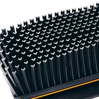 Der V7-Universalbesen mit 690 V-förmigen Borsten geht Haaren und Schmutz mit technischer Raffinesse an den Kragen. Den V-Borsten entgeht nichts, weder auf glatten Böden im Salon noch auf den Wegen, Terrassen oder sogar Teppichböden. Durch die elektrostatische Aufladung der Borsten beim Kehren zieht der V7 Besen Haare, Staub und Schmutz an. Mit der Gummilippe am Besenrücken kann Wasser und Schaum abgezogen werden. Der V7 Universalbesen wird mit farblich passendem Teleskopstiel (ausziehbar bis auf eine Länge von 1,50 m) geliefert.
