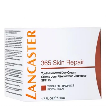 An 365 Tagen im Jahr muss sich Ihre Haut kontinuierlich an wechselnde Umweltbedingungen und Lebensstile anpassen, welche den Hautalterungsprozess beschleunigen können. Die 365 Skin Repair Tagescreme mit Sonnenschutzfaktor 15 von Lancaster unterstützt den Schutz und die Reparatur der Haut – Tag für Tag. Die frische, zarte Creme zielt sowohl auf biologische als auch umweltbedingte Ursachen der Hautalterung ab. Ideal, wenn Sie eine Hautpflege-Lösung gegen externe Faktoren wie UV-Strahlen, Verschmutzung, Stress sowie Schlafmangel suchen.