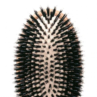 9-reihig. Die Travel Allround Hair Brush im Reiseformat ist die ideale Reinigung, wann immer Sie ihr Haar umstylen möchten, ohne es zu waschen. Ihre perfekte Mischung aus Wildschweinborsten und Nylonpins bürstet sanft und dennoch gründlich jedes Stylingprodukt mühelos aus dem Haar und verleiht ihm einen unerhört seidigen Glanz. Das Bürstenkissen aus Naturkautschuk federt jeden Druck ab, so dass Sie nie das Gefühl haben, unsanft mit Haar oder Kopfhaut umzugehen. Der edel geformte Griff aus mehrfach gewachstem, glattem Buchenholz liegt sicher in ihrer Hand und veredelt die Bürste zum dekorativen Accecoires im Bad oder in ihrer Handtasche.
