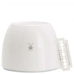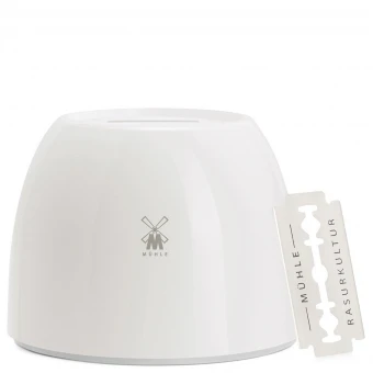 Der Klingensammler aus Porzellan entsorgt Klingen stilvoll und sicher. Über Jahre hinweg können gebrauchte Rasierklingen in der Porzellandose gesammelt werden und stellen im Haushalt keine Verletzungsgefahr mehr dar. Bei Bedarf kann der Klingensammler durch eine Öffnung im Boden entleert werden. In Form und Material eine harmonische Ergänzung zu unseren Rasiertiegeln.