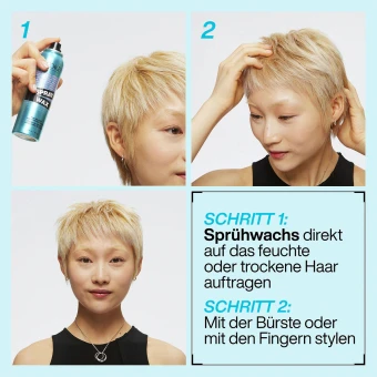 Spray Wax ist ein Sprühwachs mit mittlerem Halt. Das Sprühwachs ist perfekt für Undone Looks mit seidenmattem Finish. Zudem wirkt Spray Wax texturierend.
