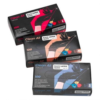 Schwarzer Qualitäts-Latexhandschuhe, puderfrei. Wiederverwendbar: Flecken sind auf dem schwarzen Latex nicht zu sehen.